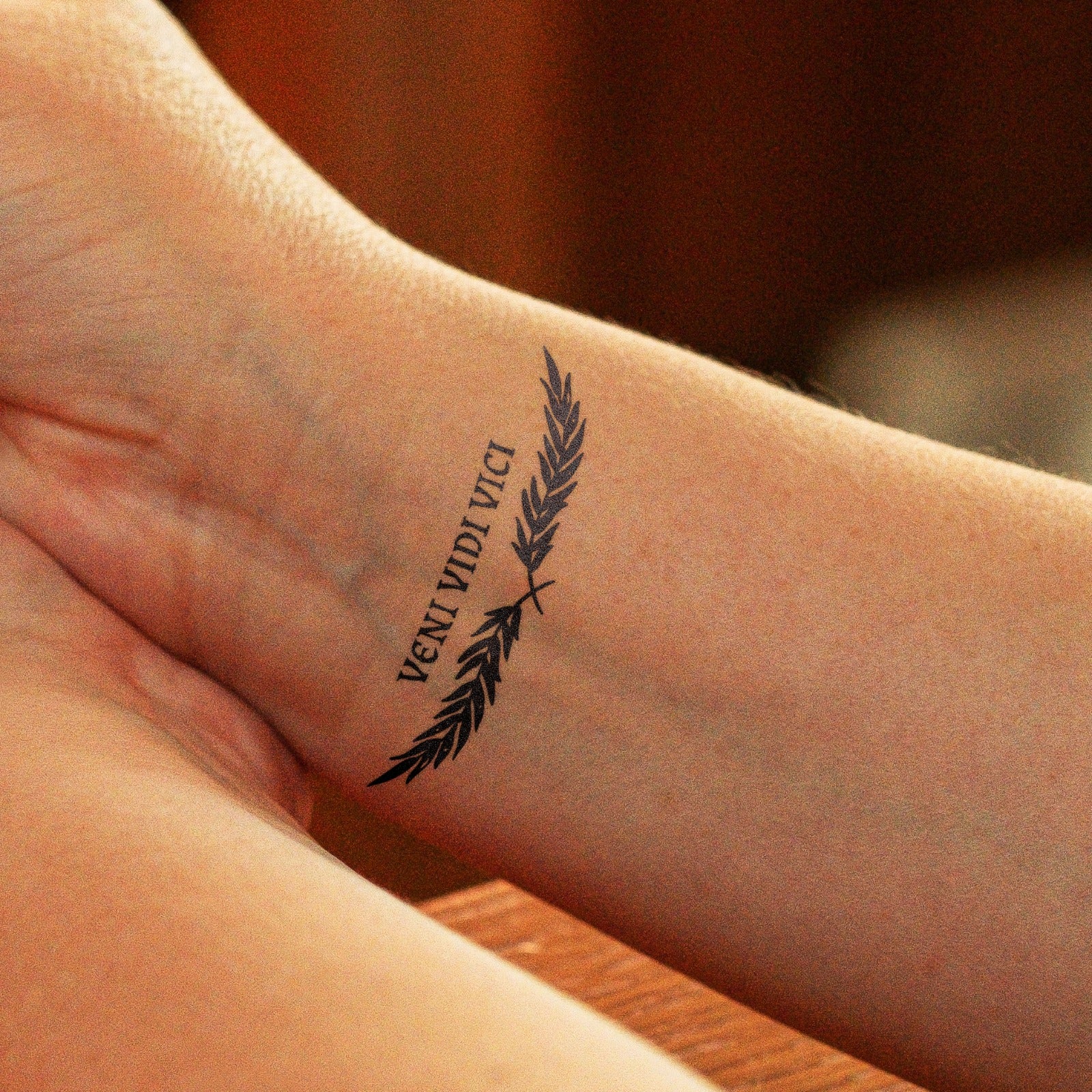 Hyper-Realistic Design – Bold Latin typography framed by laurel leaves for a victorious look