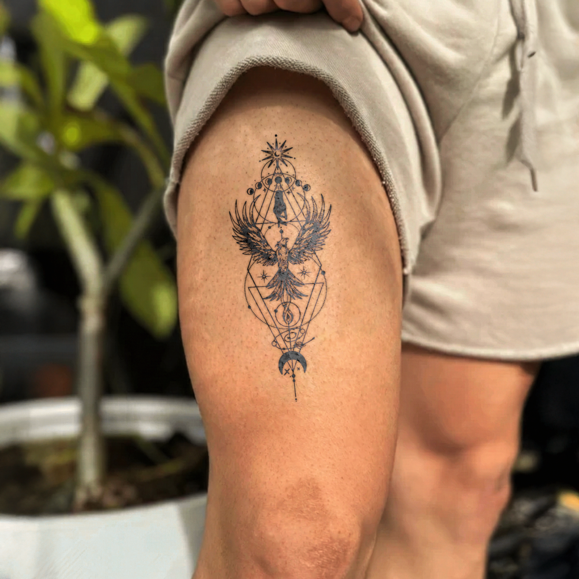 Hyper-Realistic Design – Detailed linework and geometric elements that look like real ink