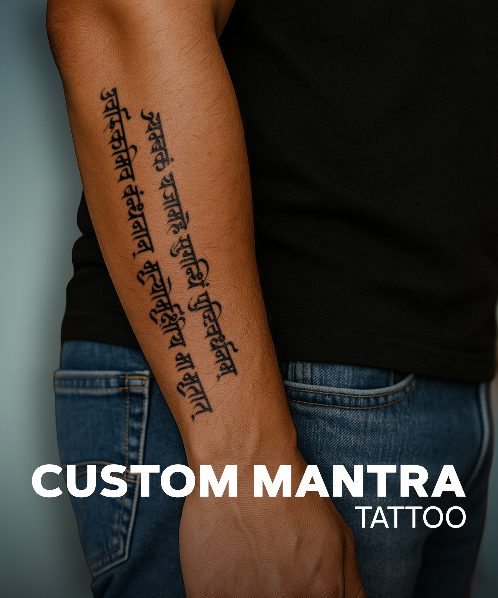 Whether it’s a Sanskrit shloka, a single English word, a spiritual phrase, or a line you live by, we design it in a minimal black-ink style that blends naturally into your skin. Subtle, elegant, and powerful — the perfect reminder you can carry every day.