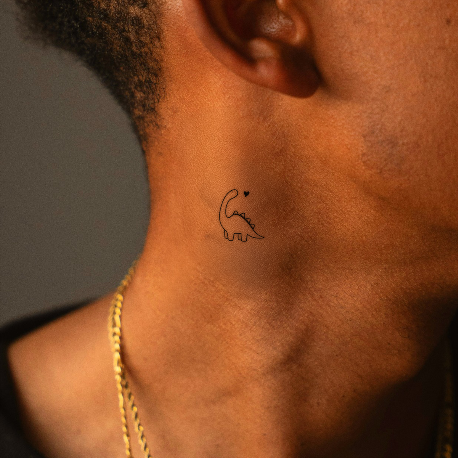 This semi-permanent tattoo features an adorable Cute Dinosaur Tattoo with a heart full of love. Whimsical, sweet, and perfect for anyone who never outgrew their dino phase.
