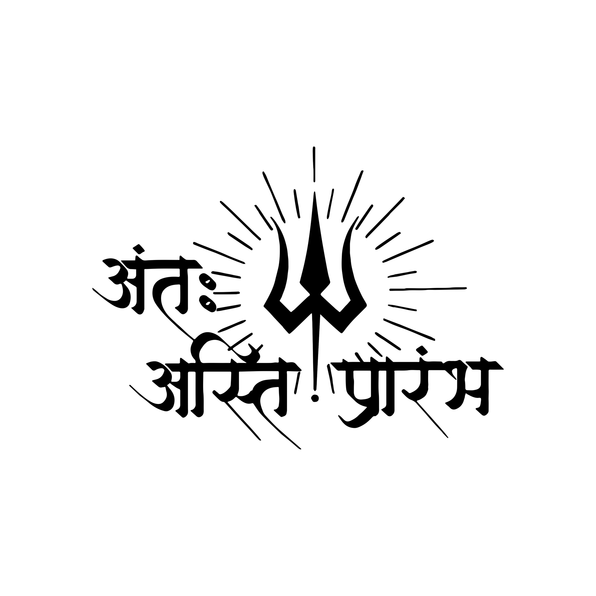 A semi-permanent tattoo featuring the sacred Trishul with the words “Antah Asti ”Prarambhah”—symbolizing Shiva’s cosmic truth that every end is a new beginning.