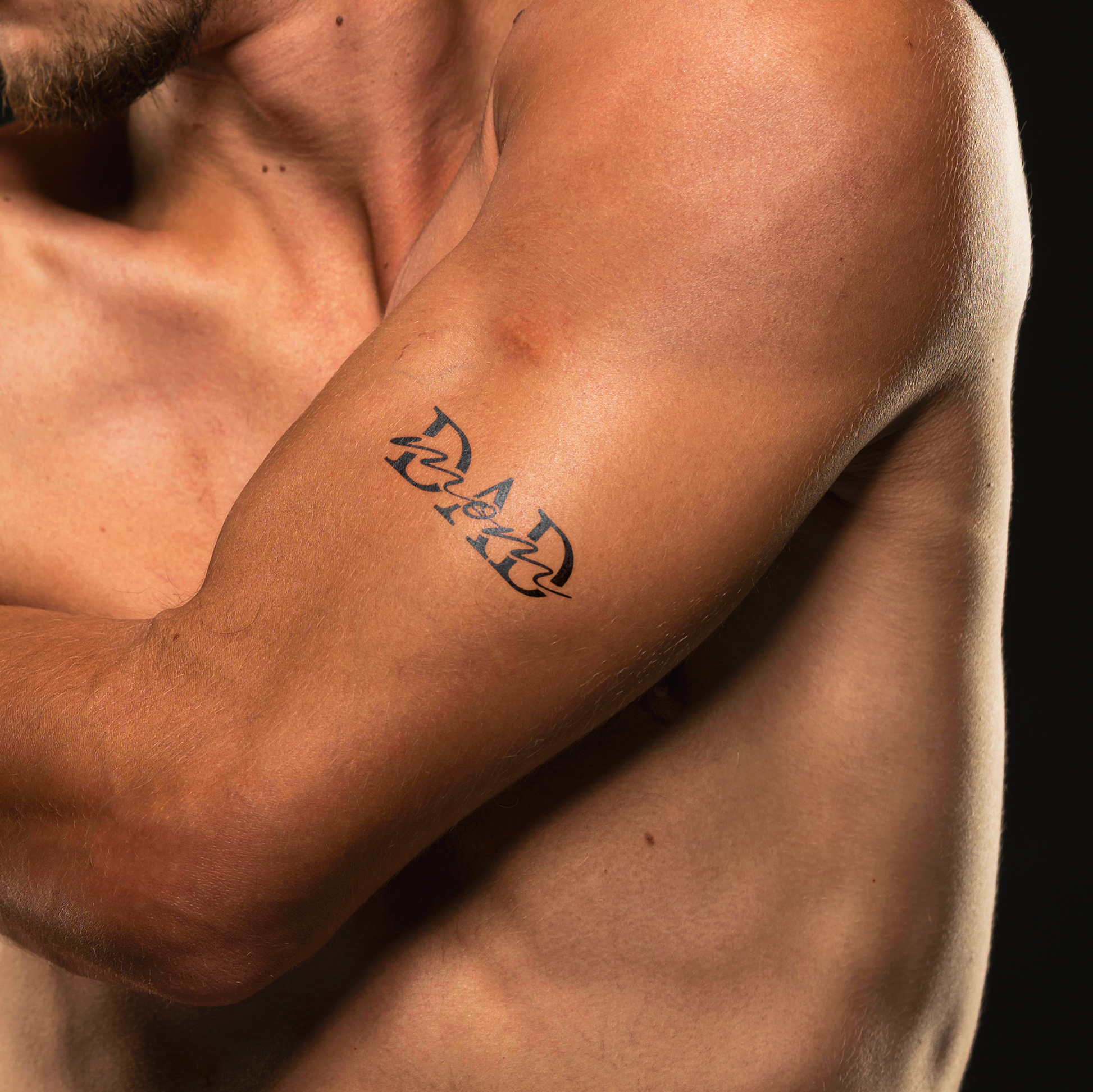 The Heart of Home Tattoo beautifully combines “MOM” and “DAD” in a sleek overlapping design, symbolizing the unbreakable bond and love that forms the heart of every home. A perfect way to honor parents and celebrate family roots.