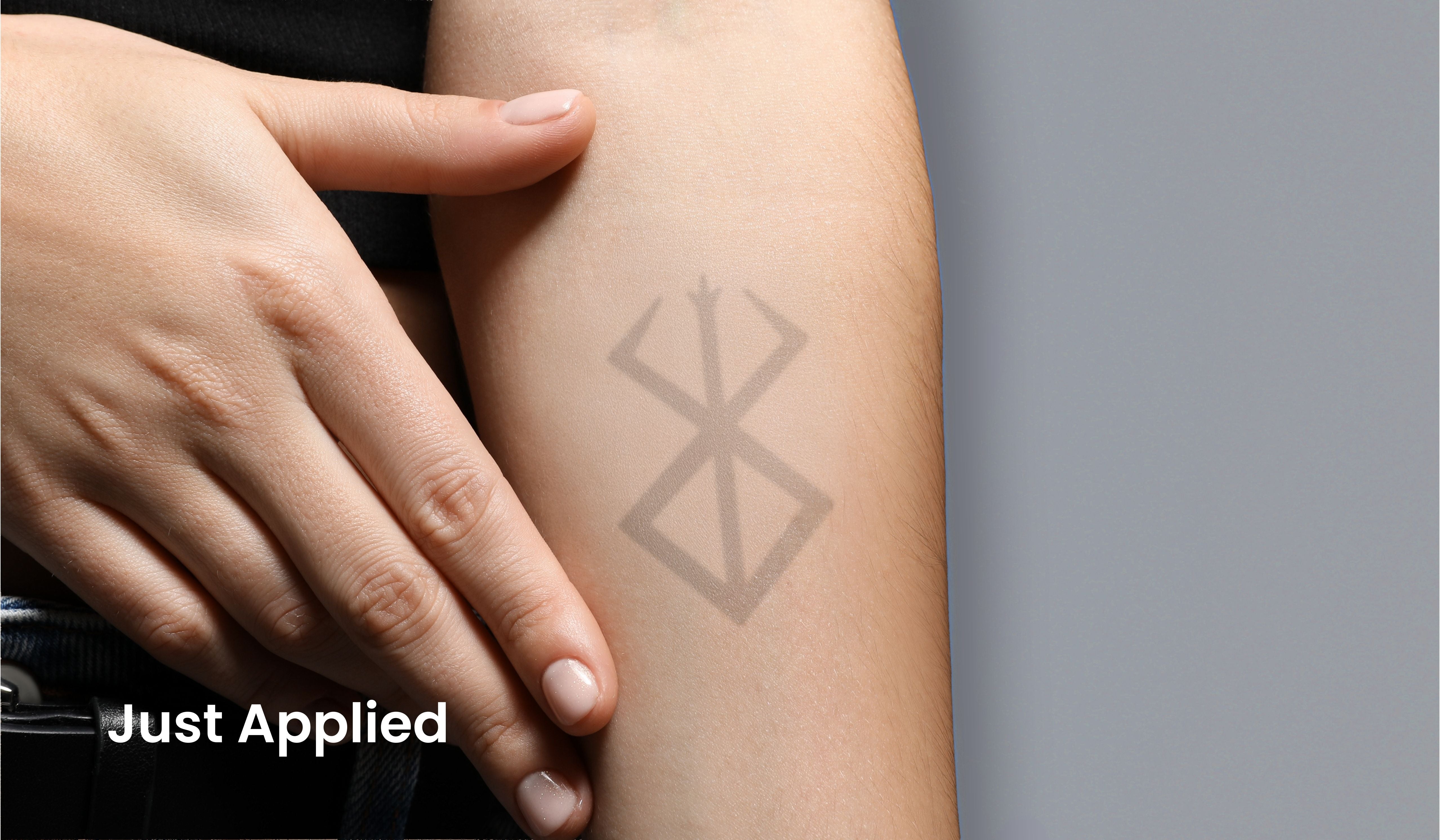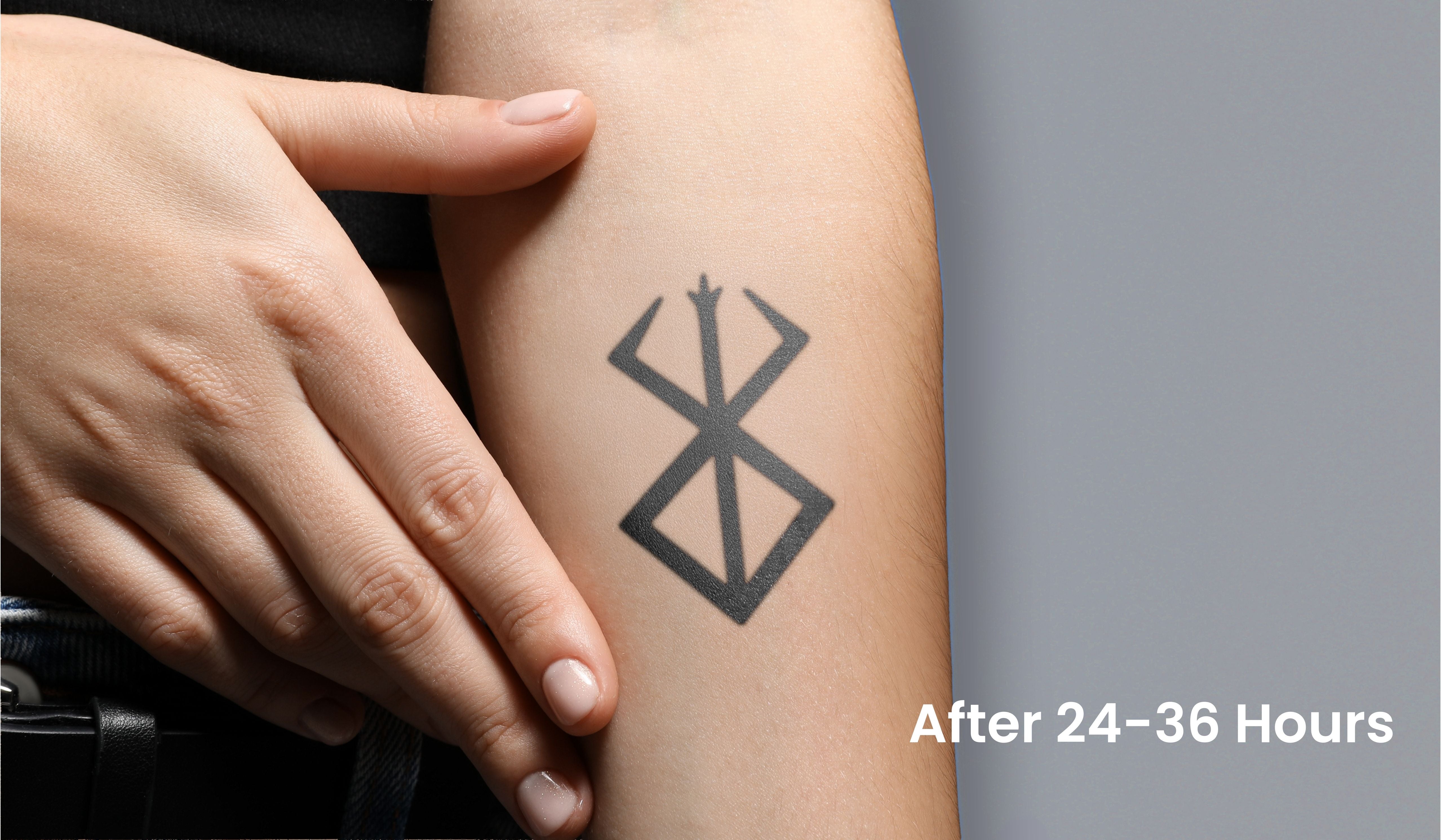 Tattoo will naturally develop into a darker, realistic look within 24–48 hours.