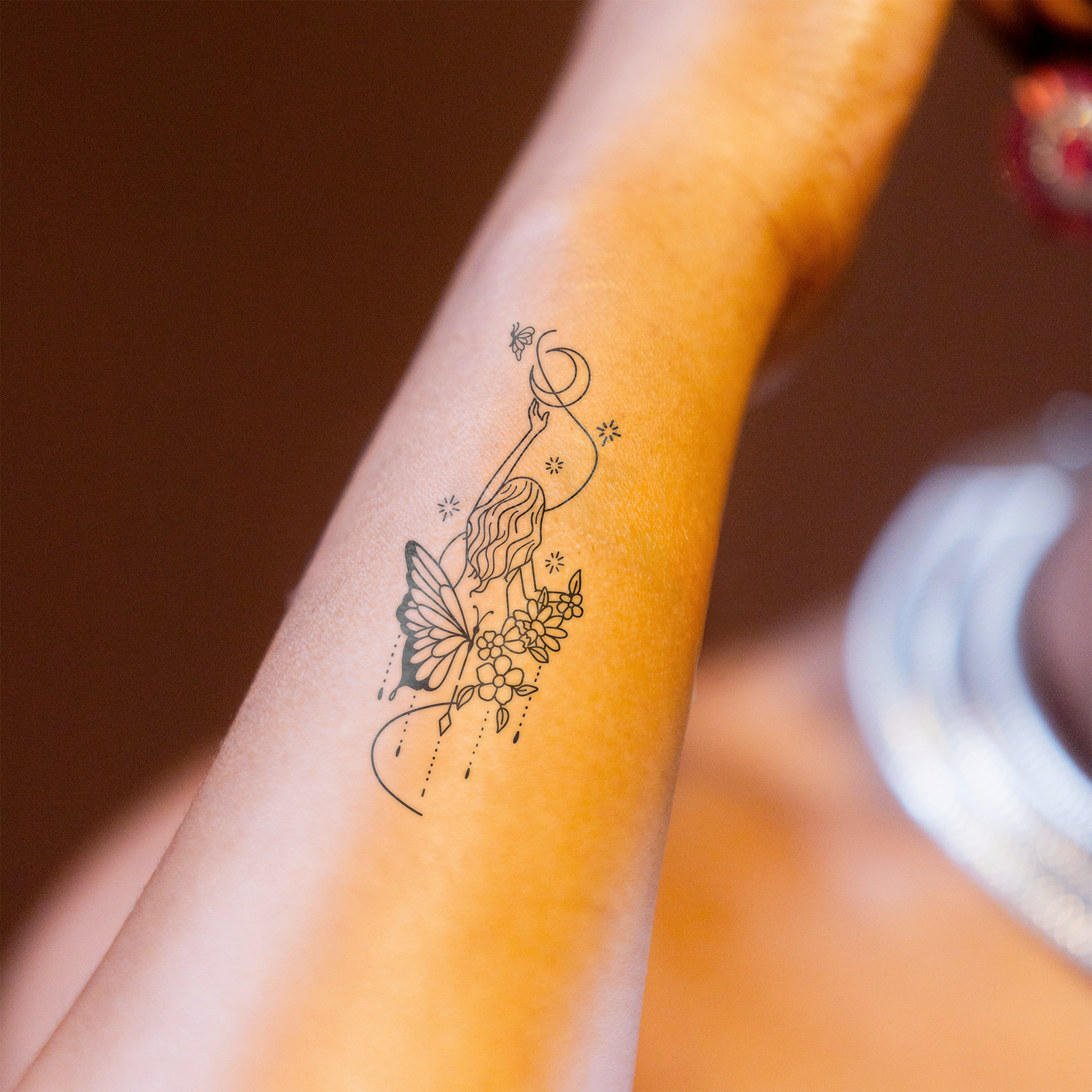 The Midnight Fairy Tattoo captures the magic of transformation — a moment where dreams, wings, and moonlight meet.