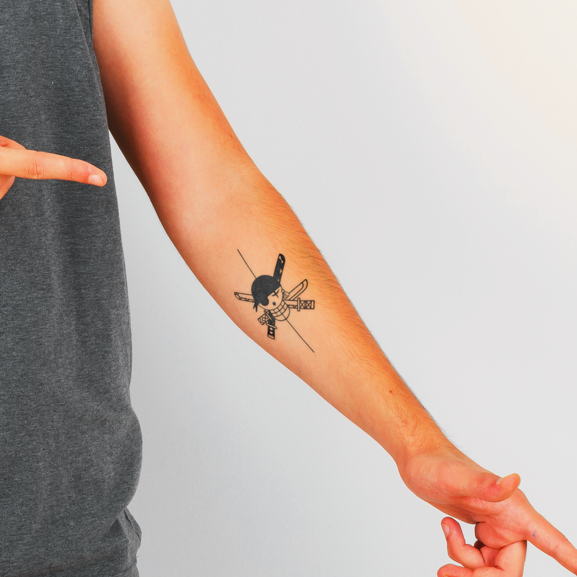 The Pirate Hunter Tattoo embodies unshakable loyalty, discipline, and courage. Inspired by the Zoro’s code, it represents devotion to one’s path — standing tall, fighting true, and protecting what matters most.