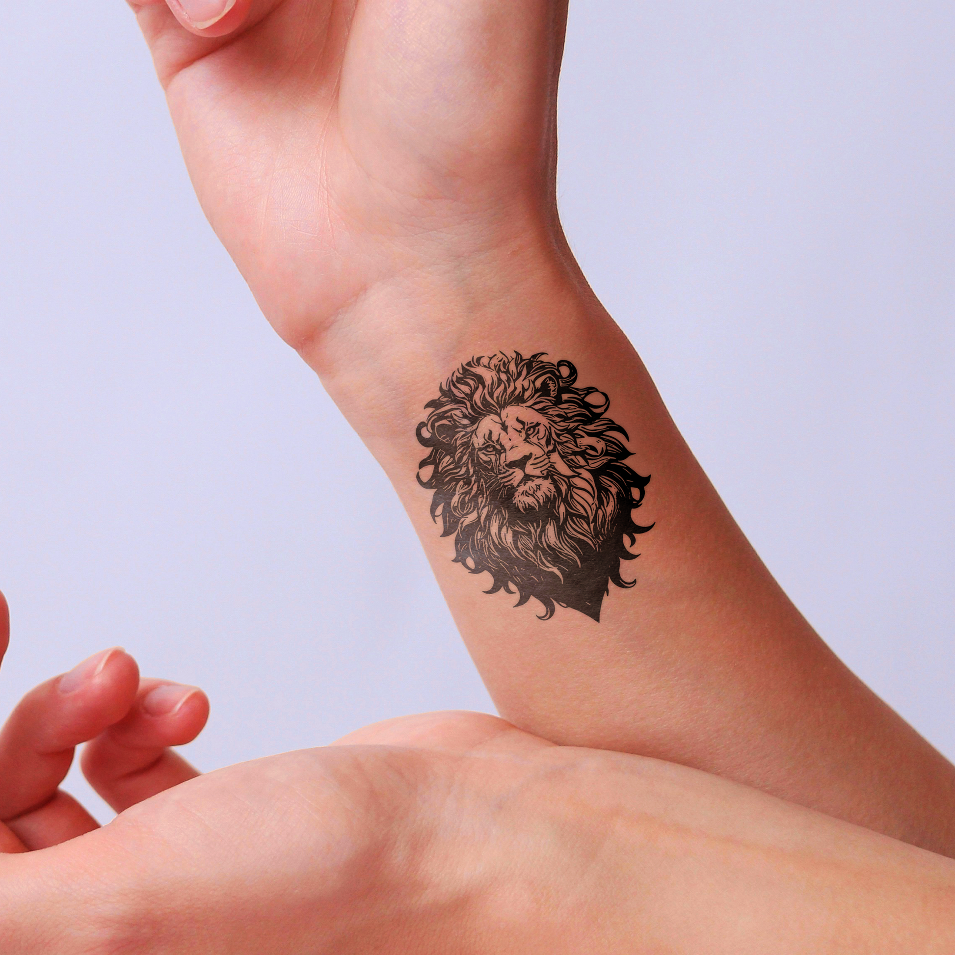 This semi-permanent tattoo features a majestic lion, drawn with intricate detail and fierce elegance. It’s more than just a symbol of royalty—it’s a tribute to those who rule their world with quiet confidence and unshakable resolve.