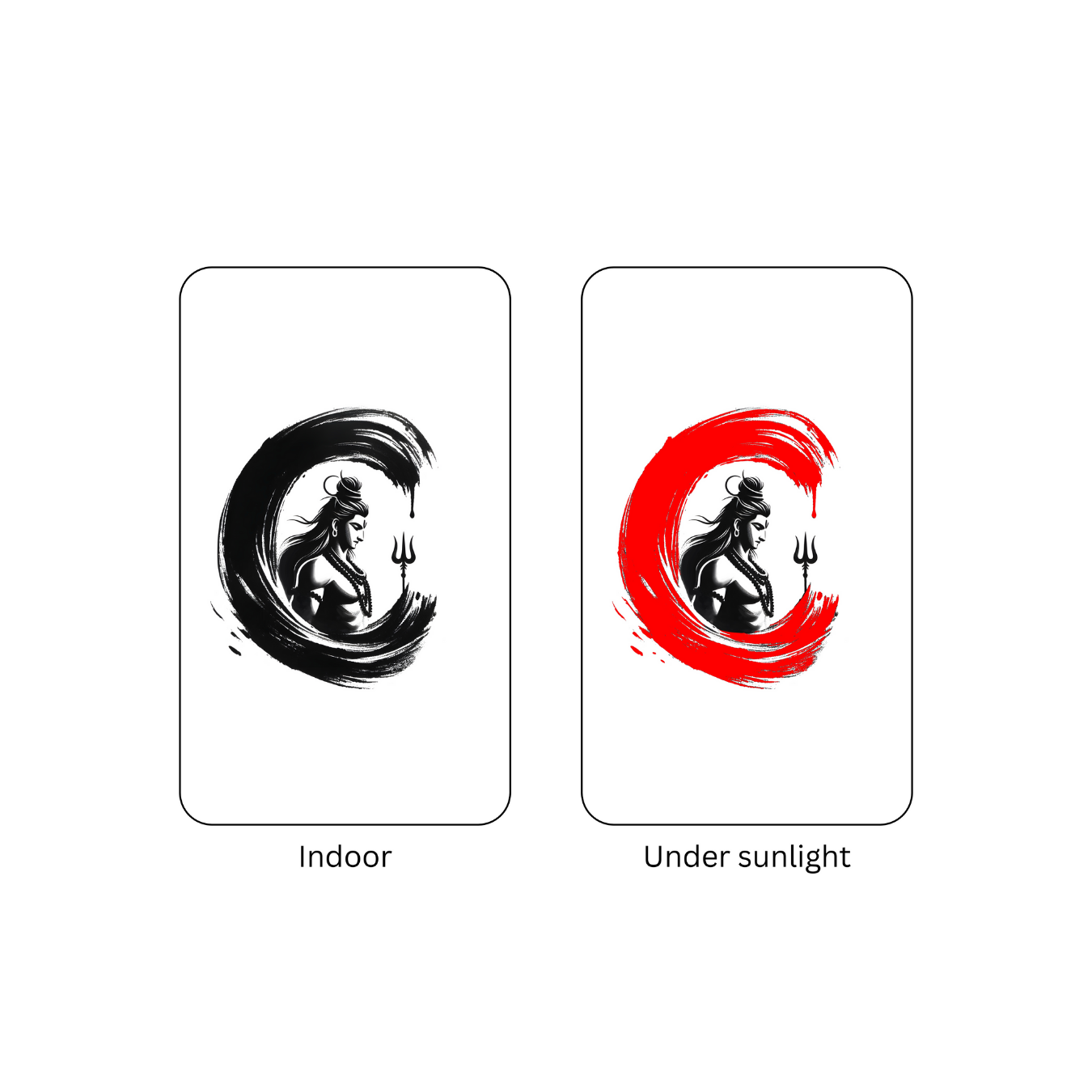 The Shiva Shakti Tattoo embodies balance, strength, and energy. Featuring Lord Shiva with the bold Trishul and a vibrant red stroke representing Shakti, this design is perfect for those who carry calm in the soul and fire in the heart—ideal for short-term bold expression.
