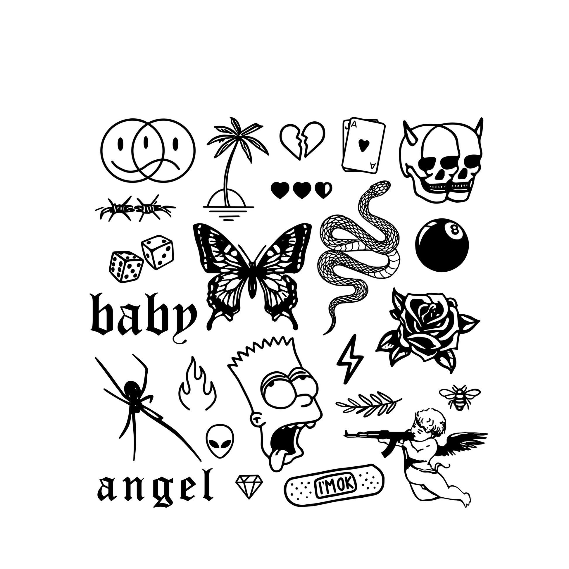 Why choose one tattoo when you can play them all? The Tattoo Roulette Pack is a wild mix of 20+ mini designs—skulls, butterflies, snakes, angels, dice, roses, aliens, and heartbreaks. Just like roulette, you never know which one you’ll wear next—and that’s the fun.