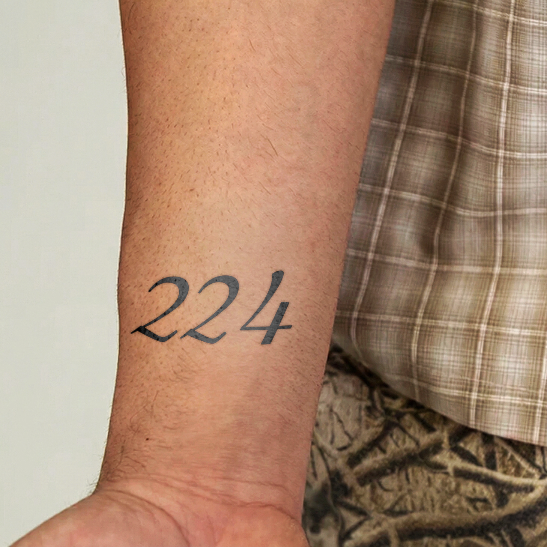 The tattoo develops naturally within 24–48 hours after application for a realistic ink effect.
